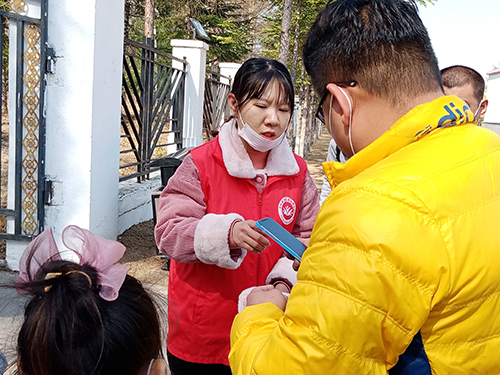 志愿者積極幫助行動(dòng)困難游客,助力圓夢大美長白。