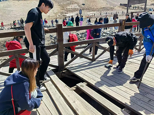主峰管理員于子成見(jiàn)狀趕緊上前詢問(wèn),并立即將情況報(bào)告組長(zhǎng)楊曉旭。由于天池主峰特殊的火山砂礫地質(zhì)環(huán)境,給尋找一枚小小的戒指增加了相當(dāng)大的難度。楊曉旭一邊安撫游客情緒,一邊詢問(wèn)游覽線路范圍,幫助兩人回想戒指遺失的大概位置。同時(shí)組織員工們在二人走過(guò)的游覽線路之間,一寸一寸仔細(xì)尋找,最終將戒指遺失位置鎖定在木板棧道縫隙下。最后通過(guò)拆除了二十余塊木板,終于找到了“藏”在棧道下的金戒指。邵先生拿到戒指十分感動(dòng),當(dāng)即拿出“紅包”表示感謝,主峰管理部員工們果斷拒絕:“這都是我們應(yīng)該做的,你們的滿意和認(rèn)可就是對(duì)我們最大的支持和鼓勵(lì)”。