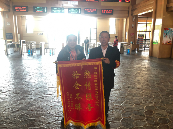 6月24日,池西游客服務(wù)中心副經(jīng)理王金鵬又接待了一位前來贈送錦旗的游客。因為安檢員王波在6月13日,拾到一部三星手機,并及時上交,通過多方了解才知道,失主是一位韓國游客,手機的及時歸還也為該游客省去了很多不必要的麻煩。所以,委托旅行社贈送錦旗一面,稱贊王波拾金不昧的精神。同時這也是這個月里池西游客服務(wù)中心第二次有游客贈送錦旗,這是對景區(qū)員工優(yōu)質(zhì)服務(wù)高度的認可與贊揚。