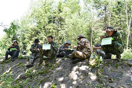 他們無懼30多度的高溫,爭先恐后、你追我趕,一顆顆黃豆大的汗珠滑過了他們的臉頰和嘴角。穿著膠靴作業(yè),悶熱捂腳,穿著布鞋干活,又會(huì)被水浸泡。大多數(shù)的隊(duì)員們都曾被割草機(jī)卷起的石子和木棍打得傷痕累累。為了加快作業(yè)進(jìn)度和節(jié)省車輛燃油,大家就選擇了在作業(yè)現(xiàn)場進(jìn)食午餐,但從未缺席的綠頭蒼蠅也會(huì)準(zhǔn)時(shí)光臨,成群結(jié)隊(duì),揮之不去,弄得大家哭笑不得。
