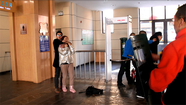 演練模擬兩名“暴恐分子”出現在池西游客服務中心,安檢員發現險情第一時間上報,并迅速啟動反恐防暴應急預案,同時向公安機關報警,全面進入應急狀態。