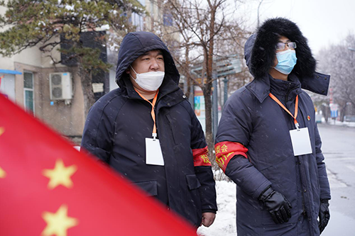 春雪的頻繁拜訪,給志愿者工作帶來了一些小麻煩,他們像是一個個將要融化的雪人,衣服濕了,鞋子透了,水珠夾雜汗水摸著臉頰跌落地上,卻無法融化志愿者抗疫的信念。他們是戰(zhàn)“疫”的守望者,披上厚大衣,帶上棉手套,穿上保暖靴,口罩遮擋住了他們的面孔,卻不能遮住他們必勝的信心,猶如一顆顆美人松屹立在春雪之中。志愿抗疫這些天,股份公司抗疫志愿隊堅守崗位,守望相助,無一人叫苦,無一人掉隊,沒有絲毫怠慢。