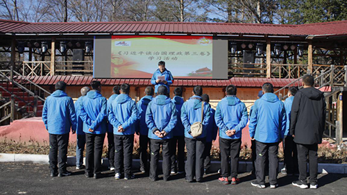 抓好理論教育,強化思想引領。活動在景區(qū)運營黨總支副書記王慧君的動員下拉開序幕,北景區(qū)運營黨支部支部委員包秀江進行“學習習近平總書記考察吉林重要講話重要指示精神”宣講活動,帶領大家學習《習近平談治國理政第三卷》,并對掃黑除惡工作進行再部署,以黨的創(chuàng)新理論滋養(yǎng)初心、引領使命,指導實踐、推動工作。